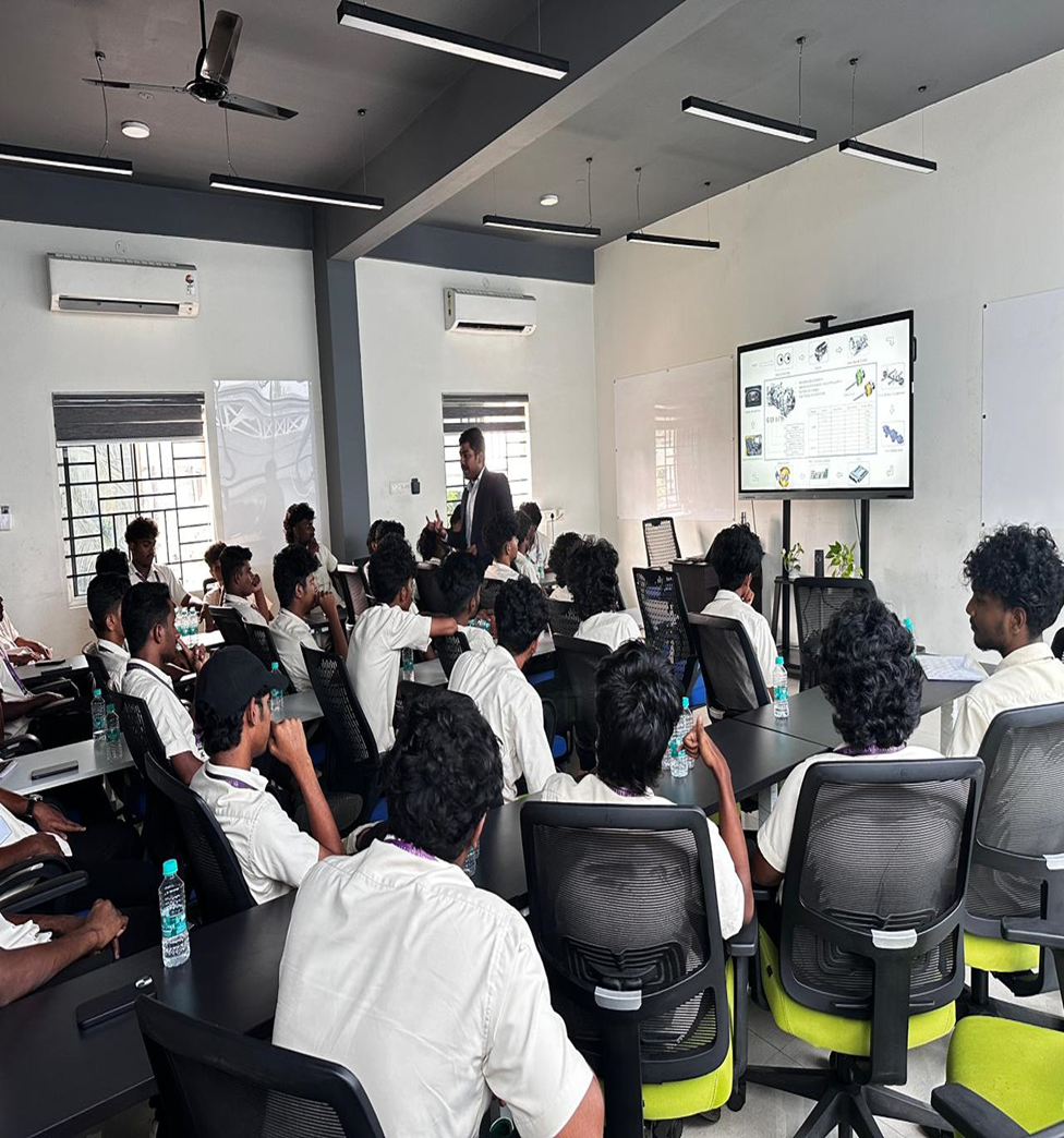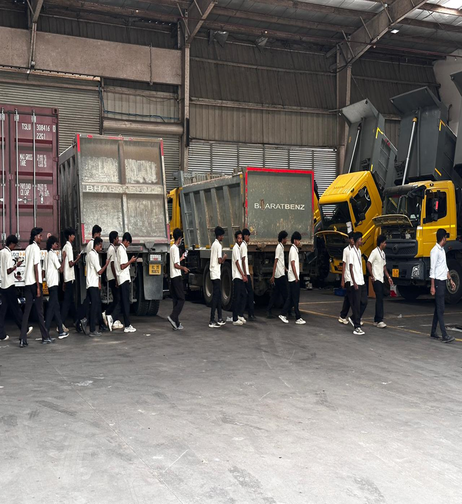 The visit provided exposure to the functioning of a heavy vehicle service centre, where students observed maintenance and servicing procedures of commercial vehicles, including engine diagnostics, transmission systems, and safety practices.