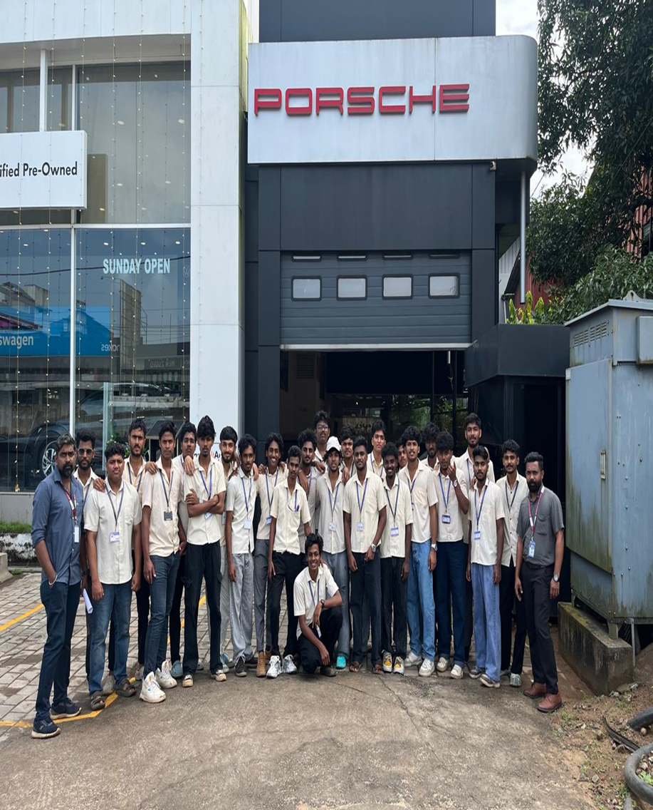 The Department of Automobile Engineering organized an industrial visit for S5 diploma students on 16th September 2025 to the Porsche Service Centre under the guidance of Leo Louis C from Nirmala Institute of Technology.