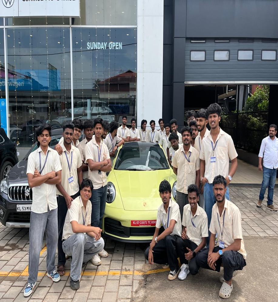 The visit provided students with practical exposure to the functioning of a premium automobile service facility. They observed modern diagnostic tools, servicing techniques, and gained insights into the advanced technologies used in Porsche vehicles.